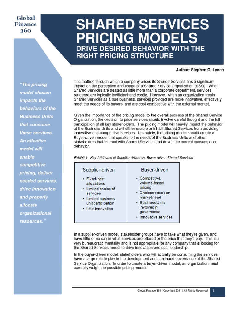 Shared Services Pricing Models Drive Desired Behavior With The Right Pricing Structure Pricing Marketing